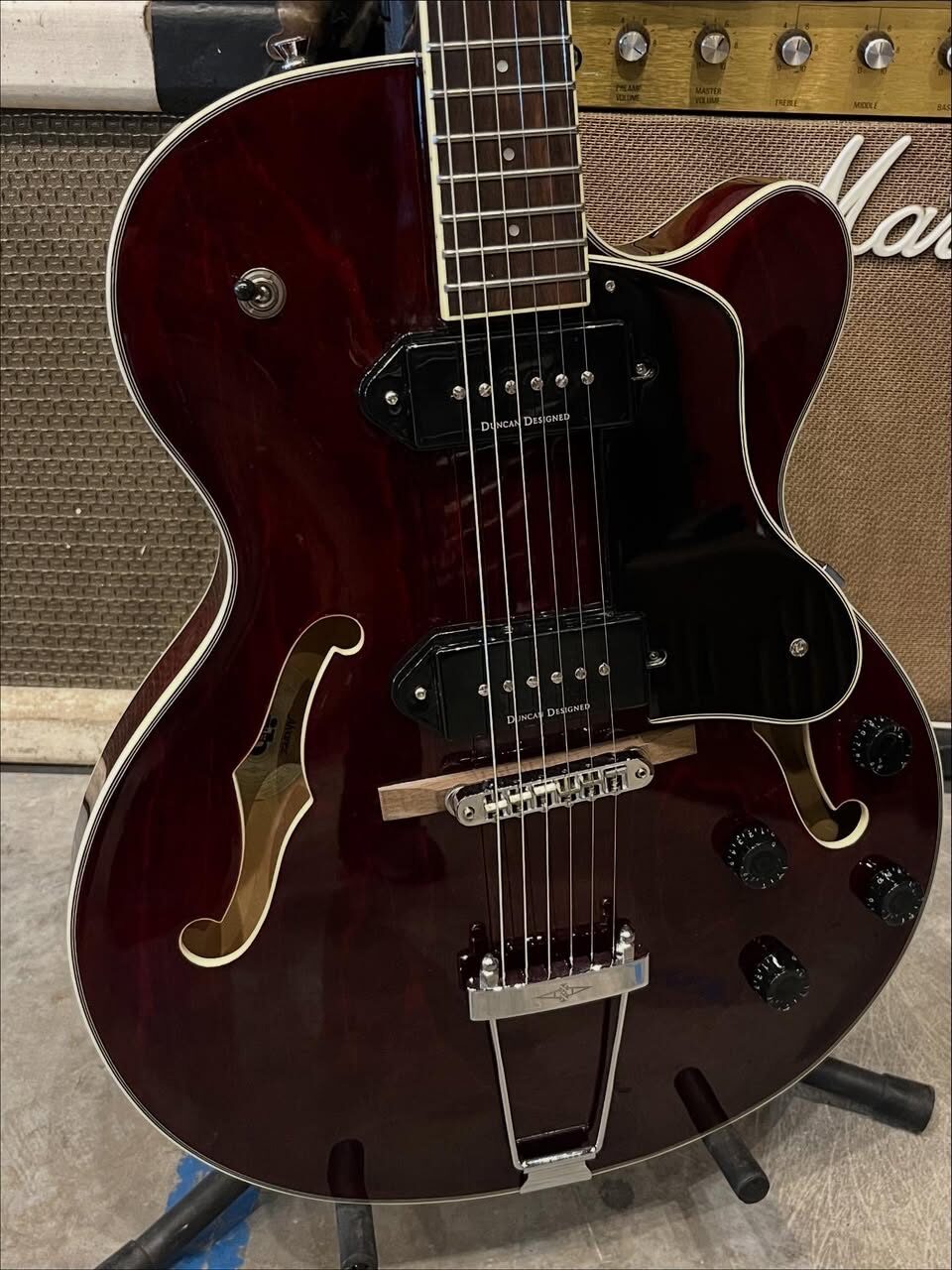 1999 Epiphone Sheraton w/hsc – $995 Made in Korea in the Samick factory. Has upgraded Bare Knuckle pickups, new pots, caps, switch & Faber tailpiece.