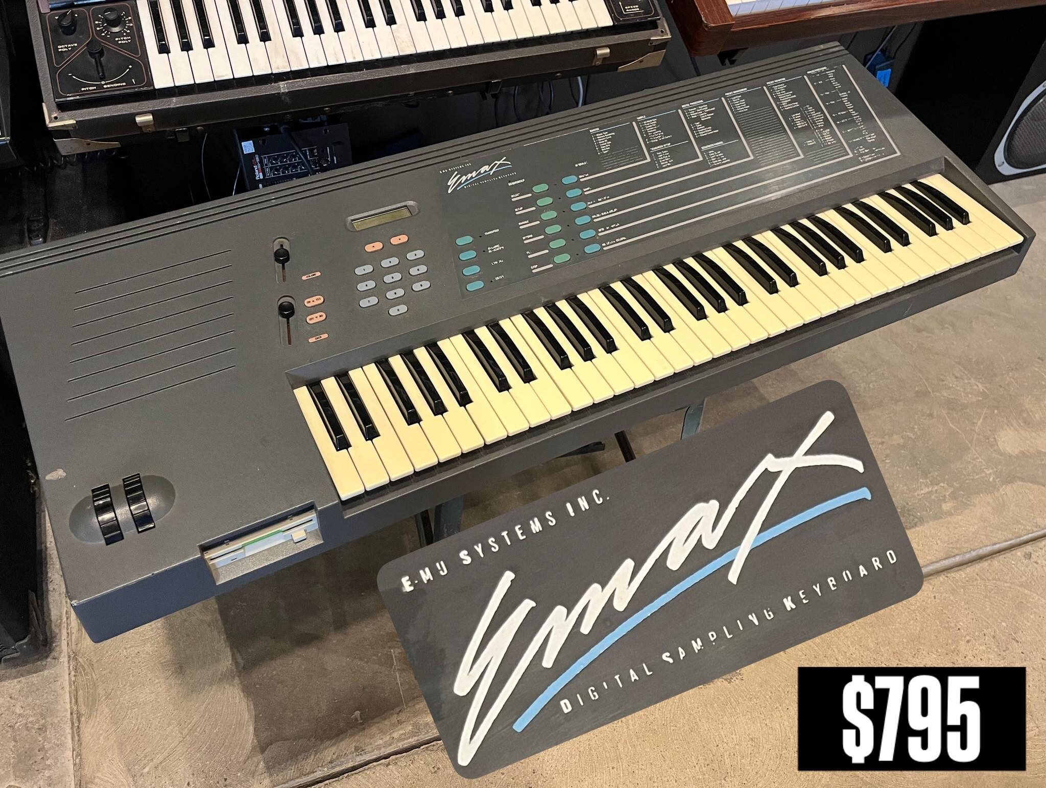 E-MU Emax sampling keyboard – $795 Comes with 3 disks.